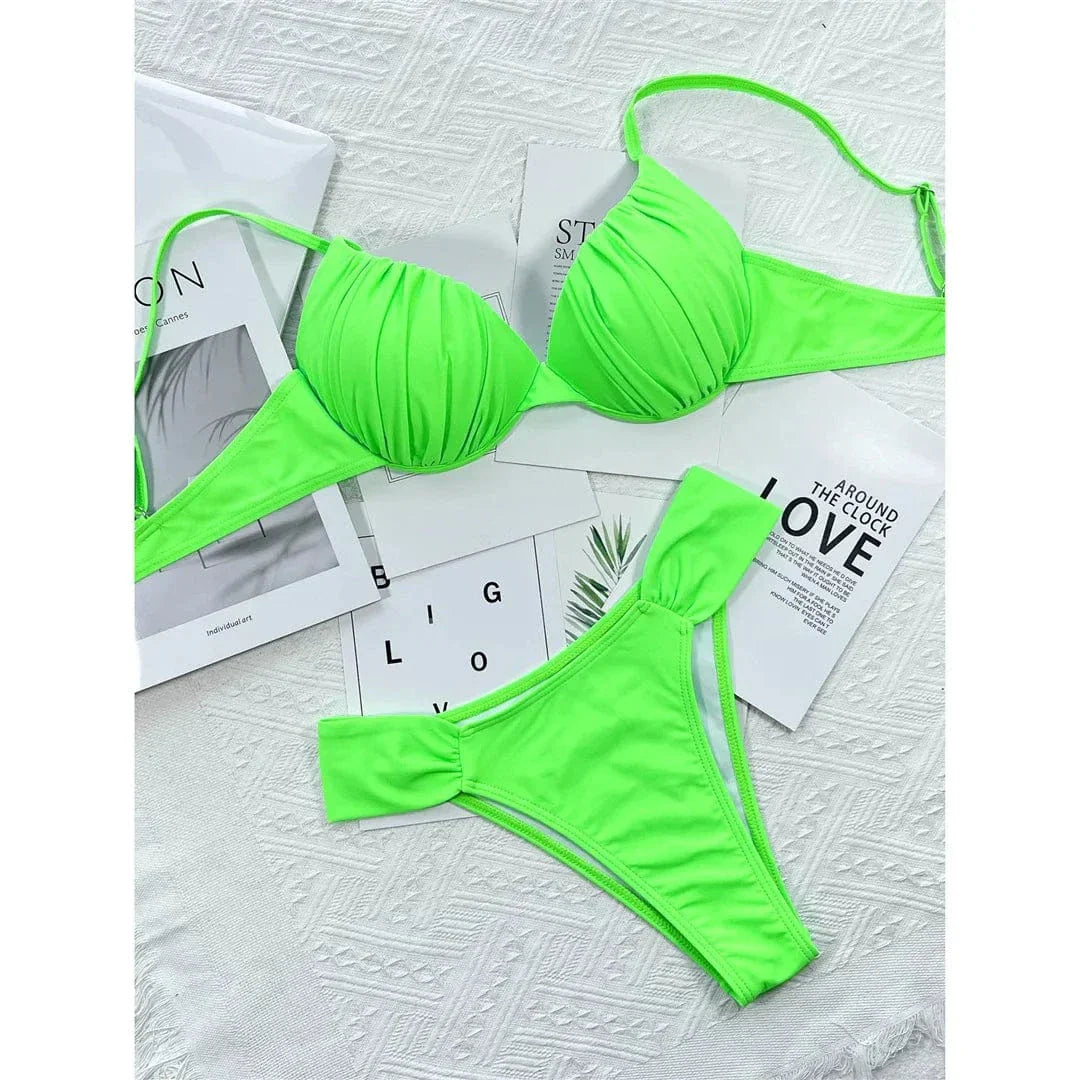 Entdecke deinen Stil am Strand mit diesem neonfarbenen Badeanzug, der modisches Aussehen mit Funktionalität verbindet. Sein zweiteiliges Design sorgt dafür, dass du dich unabhängig von der Gelegenheit wohl und selbstbewusst fühlen kannst.