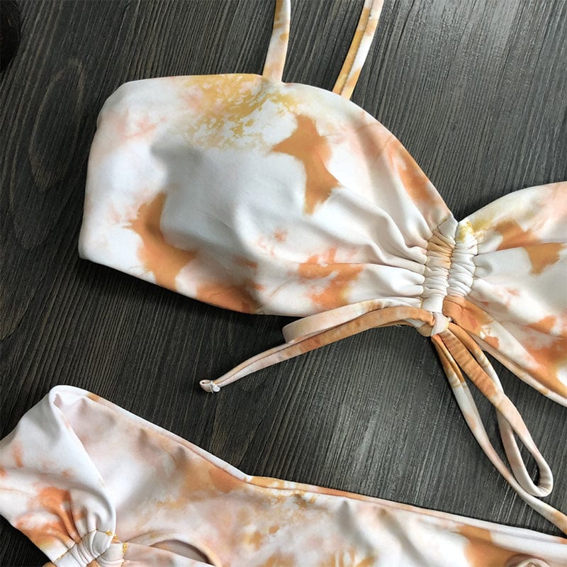 Entdecke deinen neuen Lieblingsbadeanzug, der Stil und Funktionalität vereint. Das zweiteilige Set mit modischem Tie-Dye-Muster lässt dich an jedem Strand selbstbewusst und attraktiv fühlen.